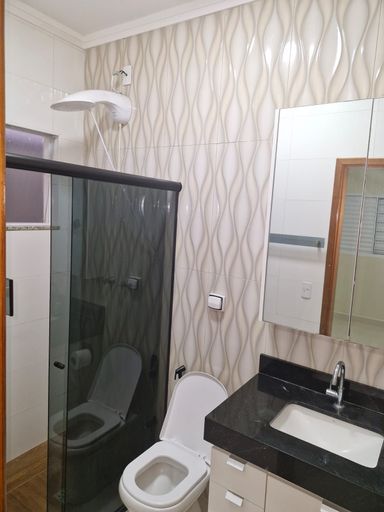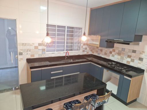 A cozinha já está completa em armários, pensada para trazer praticidade ao seu dia a dia, enquanto a garagem com churrasqueira, pia e fogão cria o espaço perfeito para momentos especiais com a família e amigos. A casa está com pintura nova em toda a parte interna e externa, incluindo os muros, e conta com instalação elétrica preparada para ar-condicionado nos três quartos — um diferencial que agrega ainda mais conforto.
