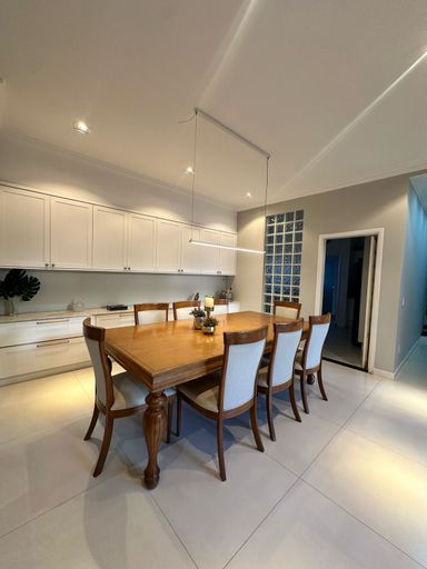 Com ambientes generosos e bem distribuídos, o imóvel conta com 5 salas (TV, lareira e jantar), além de lavabo, escritório, cozinha planejada, área de serviço, despensa e banheiro para empregada, proporcionando praticidade e elegância no dia a dia. Na área íntima, são 2 quartos e 2 suítes, com destaque para a suíte principal que impressiona ao oferecer 2 closets e 2 banheiros com banheiras, criando um verdadeiro refúgio de conforto dentro da sua própria casa.
